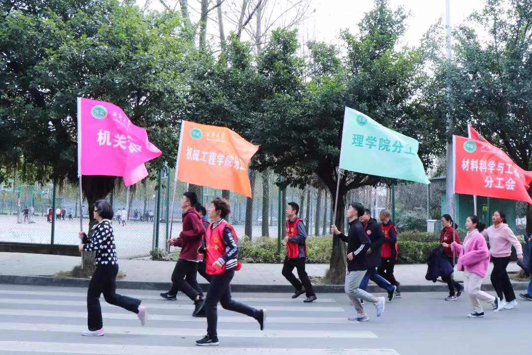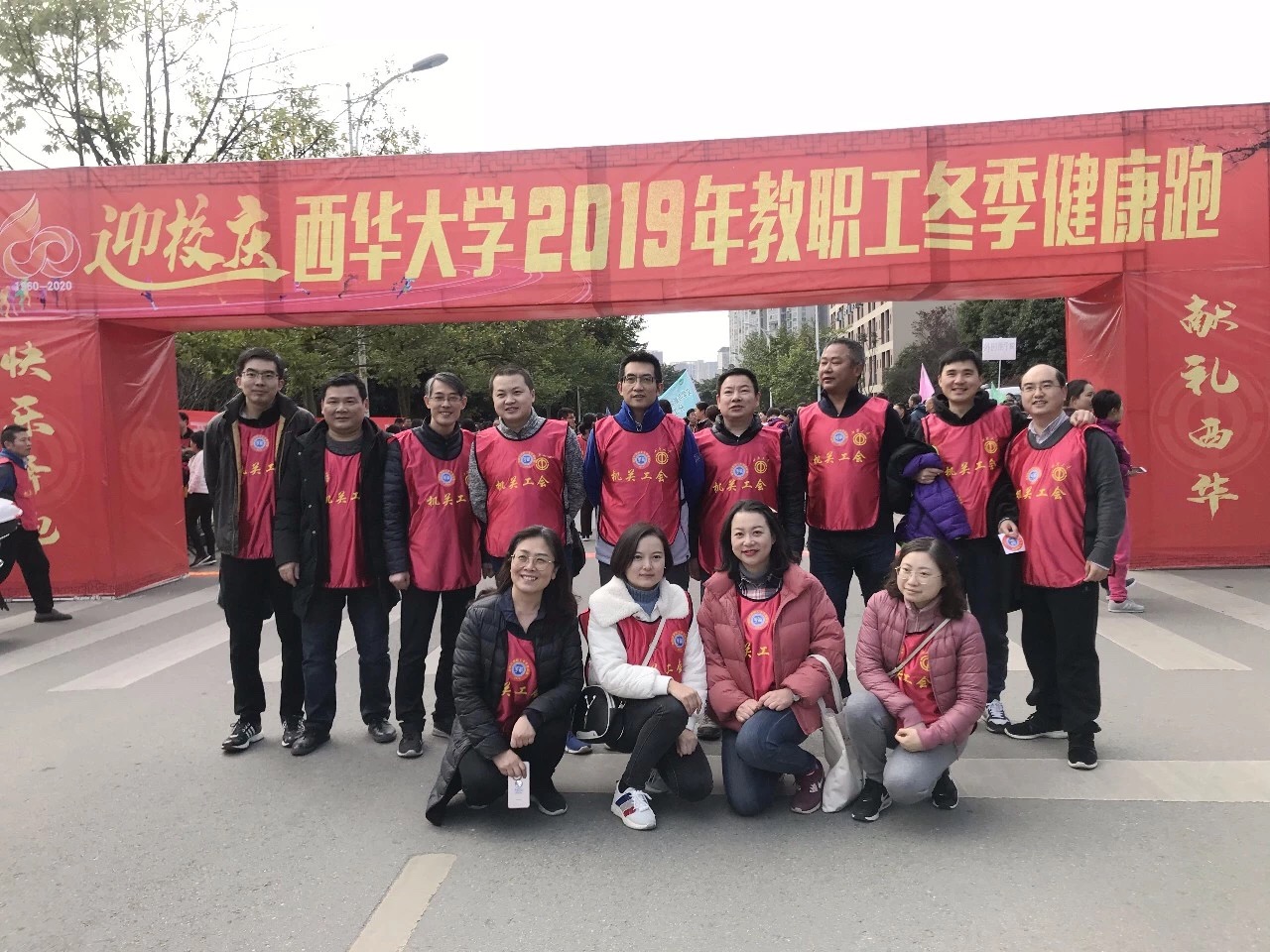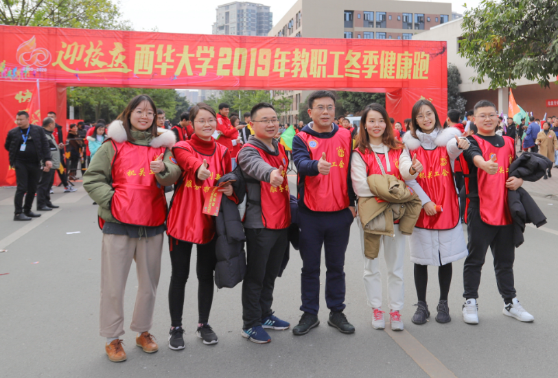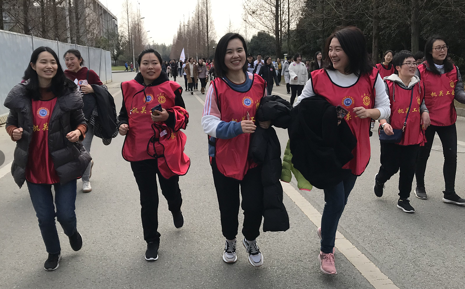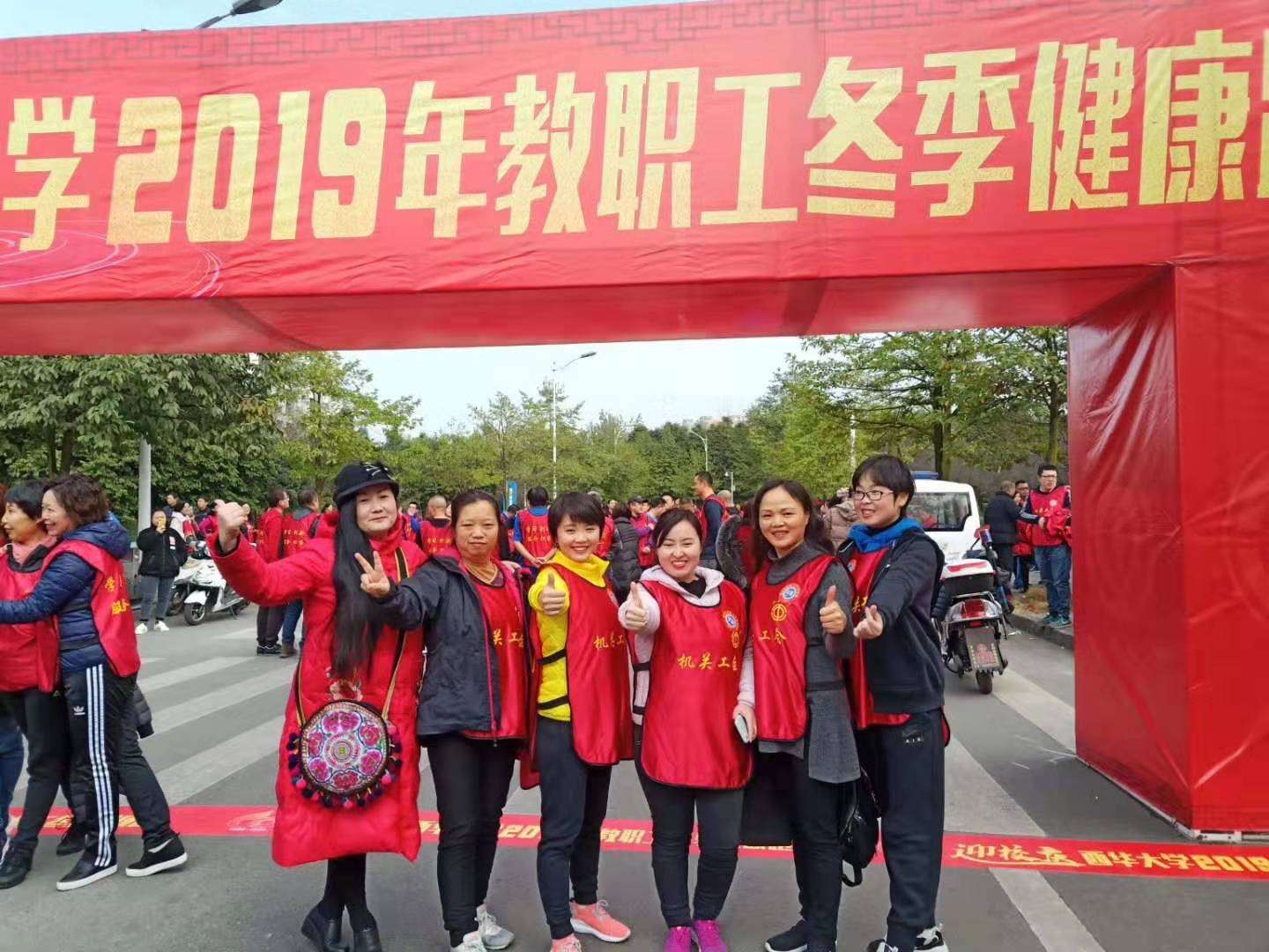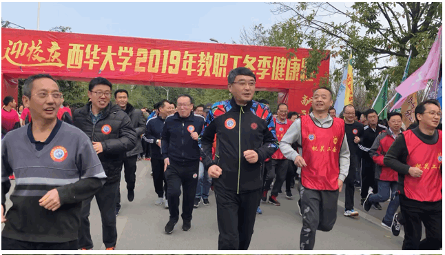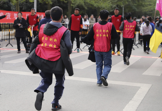 1226日下午,校工会主办的2019年教职工“迎校庆”冬季健康跑活动,在学校四食堂前举行,全长3公里左右。400多名机关工会会员穿着统一印制有“学习、创新、服务、担当”的玫瑰红马甲背心,在健康跑跑步队列中格外醒目。