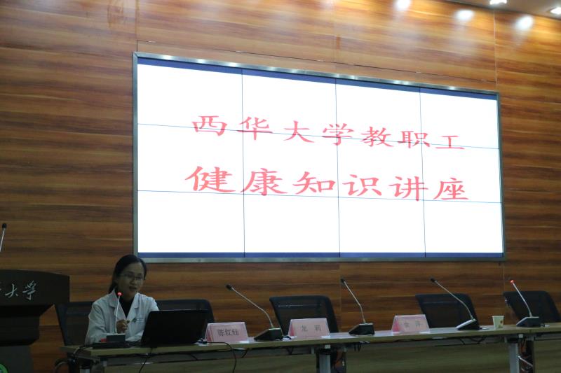 11月10日下午,四川省人民医院专家陈红钰、龙莉以及余萍医生应邀在我校图书馆报告厅为我校教职工作了一场关于防病治病健康知识讲座,并现场开展义务诊疗。本次讲座由校工会、后勤服务总公司、离退休工作处联合举办。