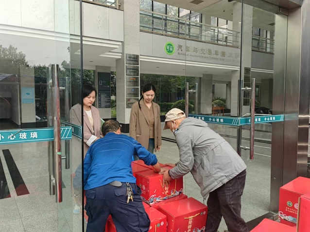 1025日上午,四辆满载南充市嘉陵区特色农副产品的货车驶进校园, 校工会、乡村振兴办公室负责人到现场验货,并与商家工作人员亲切交流。本次采购内容包括鹿茸菇、虫草花、菌汤包等产品组成的礼盒,总计2737余盒,总金额42.42万元。