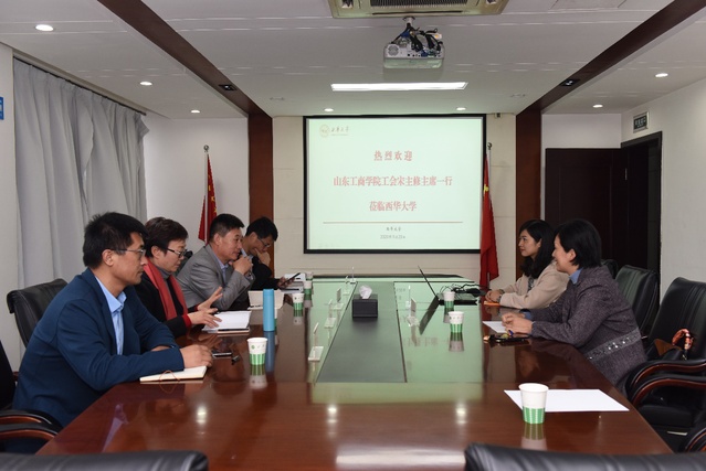 2020年11月20日,山东工商学院工会主席宋主修,管理科学与工程学院分党委书记、工会主席沙永海,工商管理学院分党委书记、工会主席杨峰丽,会计学院分党委书记、工会主席尹逊涛,法学院党总支书记、工会主席于波,工会组宣部副部长刘洪涛一行6人来我校调研交流工会工作。