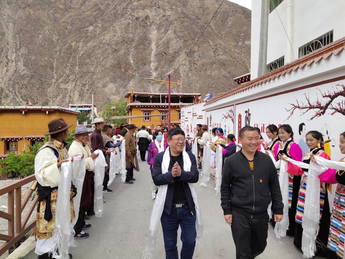 走访受灾户后,刘小兵一行前往水磨沟村活动室,在通往村会议室道路两旁,两村村民自发组织起来,身着民族盛装欢。随后,两村村民在水磨沟村活动室院坝跳起欢迎最尊贵客人的巴塘弦子,以此感谢bw西汉姆联长期以来倾智、倾情、倾力的帮扶,也寓意在我校帮扶下两村未来发展的良好前景。活动期间,水磨沟、列布西村受灾户代表阿丁和小甲错向bw西汉姆联送上锦旗,表达真诚的感激之情。