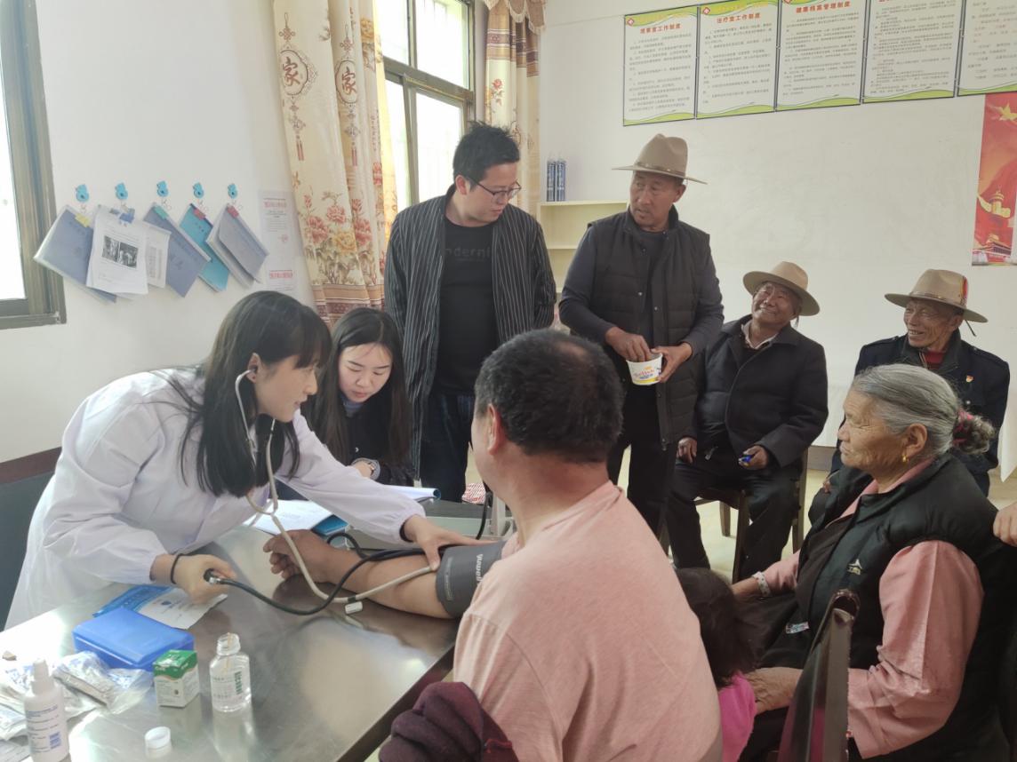 彭医生针对高原常见老年性疾病,如高血压、高原性心脏病、糖尿病等进行详细讲解,并针对当地高原特殊情况,提出在酥油茶等常用食物制作过程中一定要做到少盐、少油,提醒两村患有高血压等疾病的村民一定要按时服药,控制好血压。她耐心纠正部分高血压患者在测量血压升高时才服药的错误做法。随后,彭医生对两村50岁以上村民进行全覆盖的血压测试和血糖检测,为血压、血糖控制不达标的患者给出调整用药的建议。