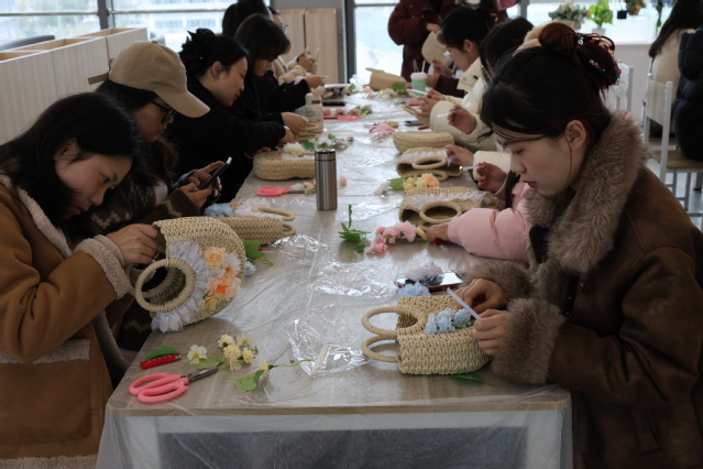 为庆祝第115个“三八”国际劳动妇女节,展现女教职工的优雅风采与匠心巧思,3月7日上午,宜宾校区直属工会小组于二食堂三楼组织了以“三月芳菲,灼灼韶华”为主题的草编包DIY活动。校区女教职工齐聚一堂,用灵巧的双手编织出属于自己的春日浪漫。