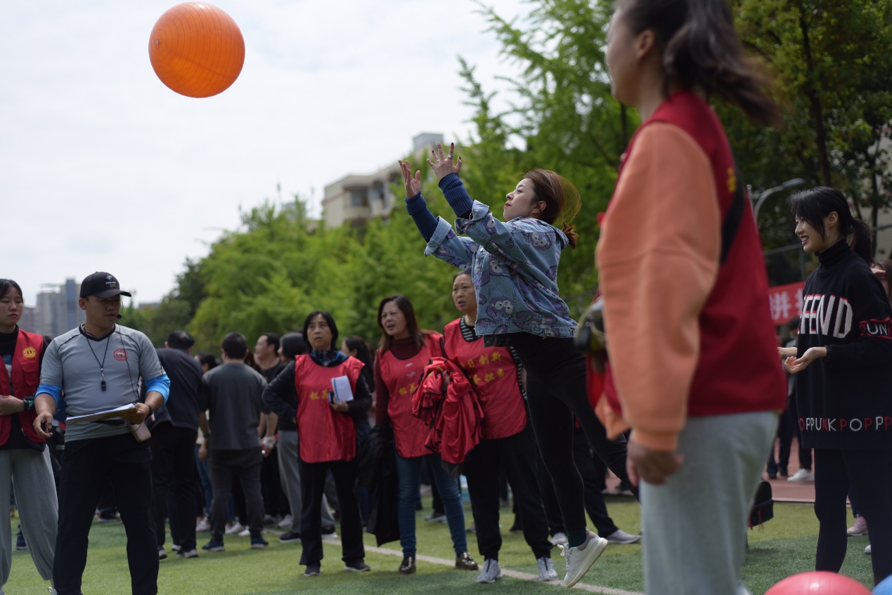 下午的比赛项目有“趣味投篮”“陆地龙舟赛跑”“鼓动人心”“桌上保龄球”,尽管气温逐渐升高,老师们的热情却没有一丝减少。“陆地龙舟赛跑”掀起了下午比赛的高潮,老师们依次跨坐在充气龙舟上,双脚踩在地面上,双手提起龙舟,然后用力蹬地推进充气龙舟前行。随着龙舟一摇一摆地前进,赛场上的欢呼声此起彼伏,老师们也随着场上的欢声笑语抵达了终点。