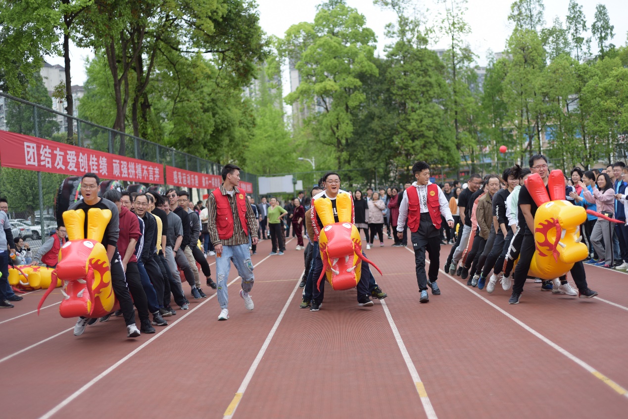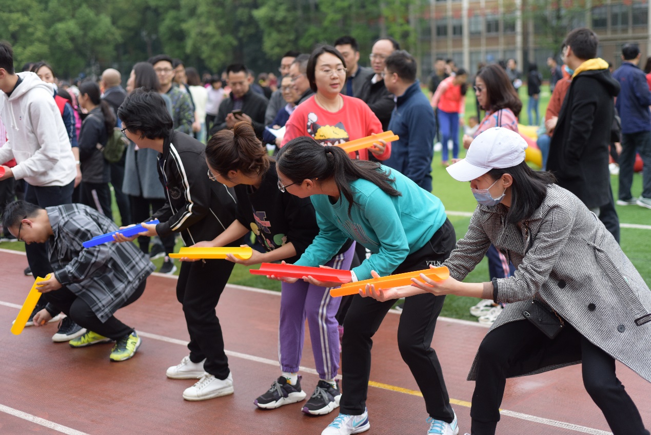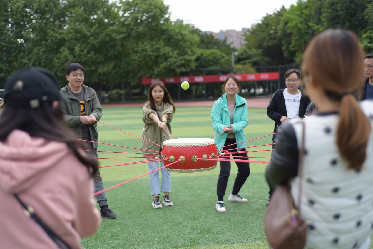 为庆祝中国共产党成立100周年,繁荣校园文化,校工会于4月14日在锦地苑田径场举办了教职工趣味运动会。运动会以集体项目为主,包括金龙钻圈、流水乒乓、超级飞镖、趣味投篮、陆地龙舟赛跑、鼓动人心、桌上保龄球7个项目,来自全校26个分工会的1792名教职工报名参赛。