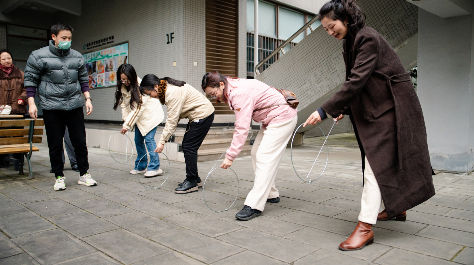 比赛分为两个阶段进行。首先,各支队伍内部进行热身与初步选拔,老师们纷纷重拾童年技能,或驾轻就熟,或略显生疏,现场充满了尝试与欢笑的温馨氛围。经过内部交流与切磋,各队推选出本系的“控环高手”进入最终决赛。围观老师们自发组成啦啦队,为选手们每一次成功的绕行喝彩,也为偶尔的“失误”送上鼓励的笑声与掌声,比赛气氛热烈而融洽。