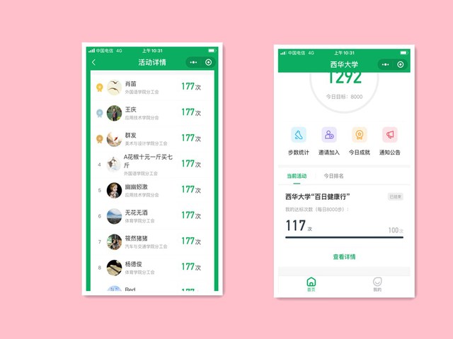 “健康行”活动目前已成为校工会品牌体育项目之一,到今年已经进行到第三年,活动创建的初衷是为实践党的十九大“广泛开展全民健身活动,加快体育强国建设”重要精神,校工会以提高广大教职工健康水平为总目标,为教职工创造良好的健身环境,期望锻炼身体成为更多人的自觉行动与日常习惯。2019年,“健康行”活动开始试点启动,活动的开展为营造校园健身氛围,倡导健康生活起到了积极的推动作用。2020年适逢全球新冠病毒席卷而来,工会制定的所有文体活动全部按下了暂停健,在老师们经受了一个特殊“长假”的煎熬之后,工会希望通过体育活动让教职工们在疫情期间缓解焦虑情绪,促进老师们身心健康,以最快最有效的方式提高免疫力,提振教职工士气。2020年开学后,校工会发出了开展教职工“抗疫健身行”活动的通知,活动时间设定在6月15日—10月15日,长达123天,活动以天为单位统计步数,当天累计8000步及以上算一次有效活动。活动期内,累计有效运动达40次即为完成活动目标。通知一经发出,教职工们积极响应号召,当年参与活动人数达1281人,达标人数为950人,达标率为74%,其中计算机与软件工程学院分工会的达标率高达94.05%。活动结束后,校工会给所有达标的教职工发放了精美纪念品。老师们纷纷表示,此次疫情特殊时期的“健身行”活动很有意义,锻炼了身体,缓解了压力,增强了体质,大家要把在活动中焕发出的激情和活力转化为做好本职工作的动力和韧劲,在未来工作中创造更大成绩。