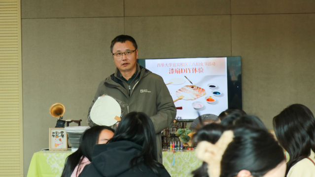 为庆祝第116个“三八”国际妇女节,3月5日下午,宜宾校区管委会在职工之家组织开展漆扇制作活动,定点宜宾校区的女教职工参加。