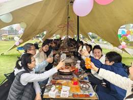 12日中午,教职工们统一乘坐校车从学院出发,前往成都市郫都区大眼花园。抵达后,大家签到入园,正式开启春日旅程。午宴在园区帐篷区温馨开席。自助烤肉与鲜香汤锅交织出浓浓的烟火气。老师们围坐一起,边烤边聊,笑语盈盈,氛围轻松热烈。