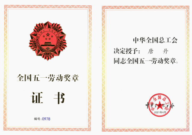个人分获全国五一劳动奖状、奖章,1297个集体获全国工人先锋号。我校唐丹喜获2021年“全国五一劳动奖章”荣誉称号。