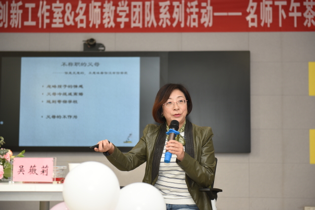 “你每天对孩子说得最多的三句话是什么?”“你能迅速说出你的孩子的三个优点吗?”“能不能描述一下自己最近一次和孩子发脾气的样子?”“你在孩子眼里是什么样子?”“为什么自己为孩子费心劳苦,却不能换来良好的亲子关系?” 4月7日下午,春日暖暖,由校工会、教务处(教师发展中心)联合举办的唐丹劳模创新工作室&唐丹名师工作室第三期“名师下午茶”沙龙活动在3E105如期举行,吸引了来自全校近30位教师参加。活动由全国五一劳动奖章获得者、法学与社会学学院唐丹副教授主持,精神病学与精神卫生学博士、首批中国心理学会注册心理督导师、法学与社会学学院吴薇莉教授担任主讲嘉宾。