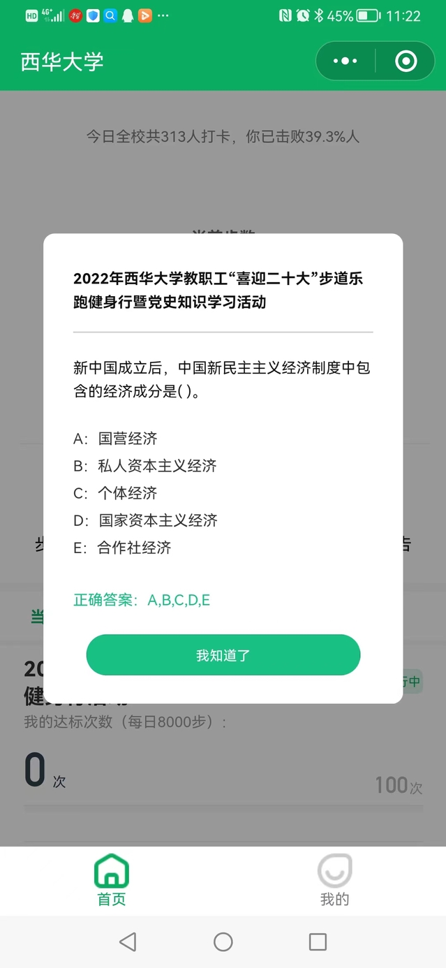 4月11日,校工会启动bw西汉姆联教职工 “喜迎二十大”党史知识学习暨步道乐跑健身行活动,开展时间为4月11日-10月31日。为鼓励广大教职工科学健身和广泛参与,经运动医学专家建议,活动将每日累计8000步数作为达标步数,活动期间教职工累计达标100次即可获得纪念品1份。今年活动的最大亮点是在延续往年科学性和便利性基础上,按照习近平总书记对工会工作的指示,努力增强工会活动的政治性,在推动党史学习教育常态化长效化上出实招,结合迎接党的二十大胜利召开,特地在打卡页面上增加了党史学习知识弹窗的设计,每次教职工打开小程序打卡即可学习党史学习知识。