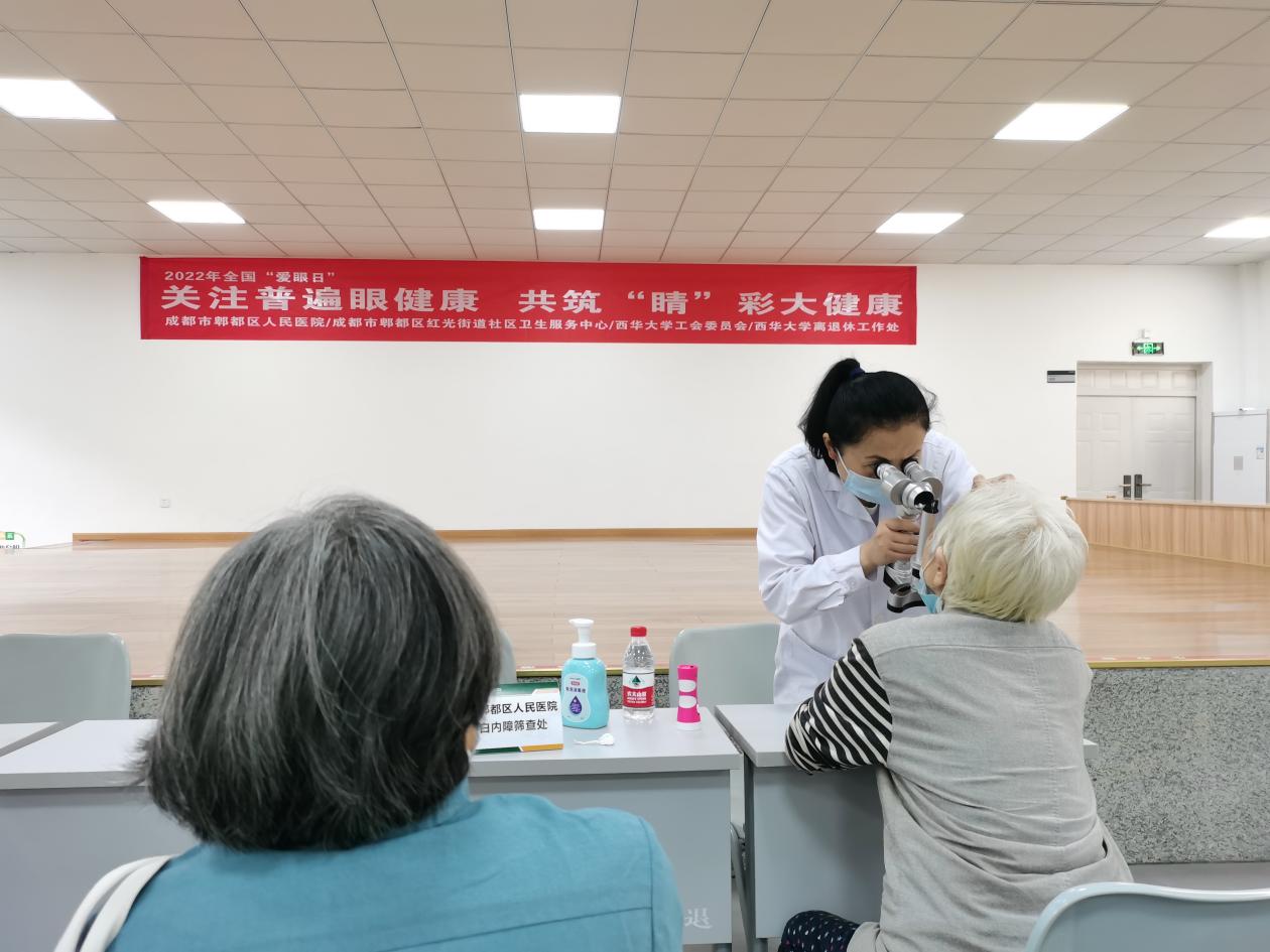 在6月6日第27个全国“爱眼日”到来之际,为推动“为民办实事”长态化、长效化,5月27日上午,校工会联合离退休工作处携手郫都区人民医院眼科、红光街道社区卫生服务中心,在夕阳红活动中心开展了一场主题为“关注普遍眼健康,共筑‘睛’彩大健康”的义诊活动,旨在为教职工和离退休同志进行免费白内障筛查、普及眼病预防知识,增强全民爱眼护眼意识。