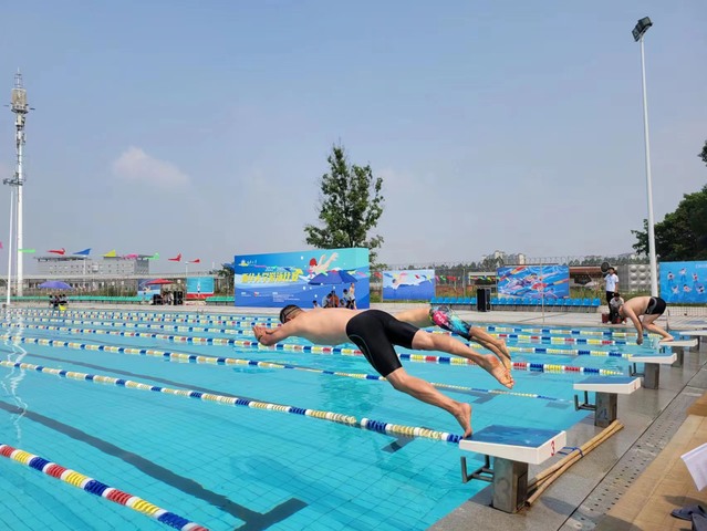 游泳比赛含50米蛙泳、50米自由泳、100米蛙泳、100米自由泳、50米蝶泳、8×50米男女自由泳接力等项目。奔腾的水花、矫健的水中身姿,展现了游泳运动员们激烈的角逐和拼搏的态度,