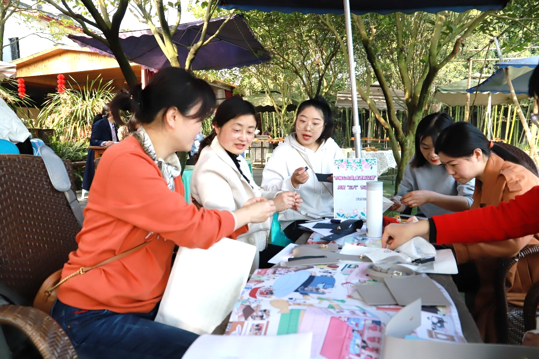 在美丽的春景中,老师们分组开展了自制手工包活动。简单的材料在老师们心灵手巧的技法下组装为精致的包袋,教职工之间的友谊也在交流与合作间得以加深。手工活动之余,老师们也积极向学院领导班子和学院分工会建言献策,表达了汇聚巾帼力量助力学院、学校发展的期盼和信心。随后,老师们一起参观了中国十大最美乡村、四川省实施乡村振兴战略工作示范村——青杠树村,了解了村落改革发展的沿革,直观感受了党和国家乡村振兴的建设成果。