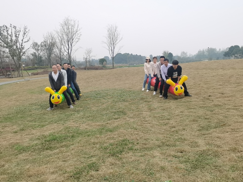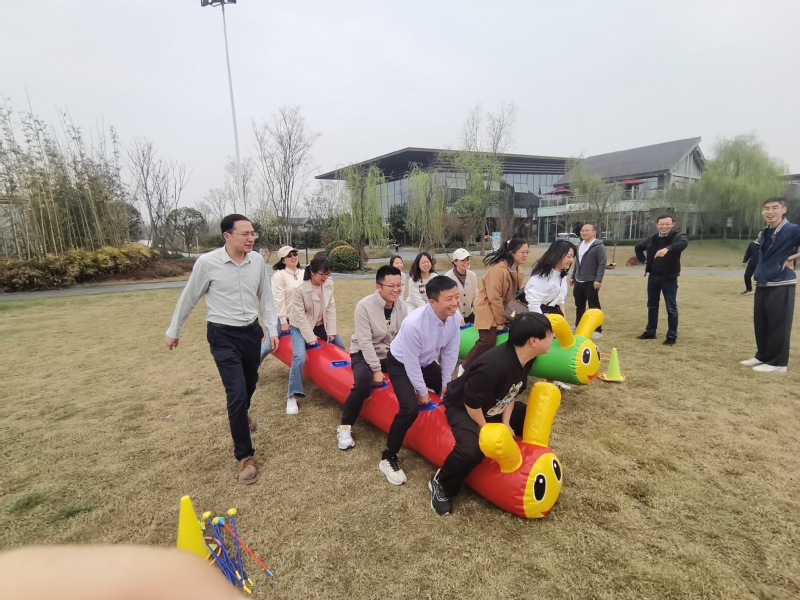 “欢乐毛毛虫”比赛共分为上下两场,以系部为单位,老师们同跨着一条巨型毛毛虫在起跑线跃跃欲试。随着裁判的一声令下,比赛正式开始,大家提着“毛毛虫”奔跑,跃动的身影形成了一道美丽的风景线,周围老师们也奋力地呼喊着:“加油”“加油”!现场气氛热烈而高涨,助威声此起彼伏,汇聚成欢乐的海洋。