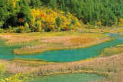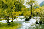 九寨沟 九寨沟位于阿坝藏族羌族自治州南坪县中南部,因沟内有9个藏族村寨而得名。景区面积62平方公里,现游览区面积50平方公里。九寨沟既是自然保护区,又是国家级风景名胜区,同时,被列入世界人类自然遗产名录。 九寨沟以三沟一百一十八海为代表,包括五滩十二瀑,十流数十泉等水景为主景,与九寨十二峰联合组成高山河谷自然景观。九寨沟以原始的生态环境,一尘不染的清新空气和雪山、森林、湖泊组合成神妙、奇幻、幽美的自然风光,显现“自然的美,美的自然”,被誉为“童话世界”、“人间仙境”。九寨沟的高峰、彩林、翠海、叠瀑和藏族风情被称为“五绝”。 九寨沟景观分布在成Y型的树正、日则、则查洼3条主沟内,总长50余公里。主要有树正景区,长75公里,有盆景滩、树正群海、树正瀑布、双龙海、火花海、卧龙海等景点组成;日则沟景区,有诺日朗、珍珠滩、高瀑布三大瀑布,有镜海、熊猫海、芳草海、天鹅海、剑岩、原始森林、悬泉、五花海等景点;则查洼沟景区,有长75公里的长海和五彩池等景点;扎如景区,有魔鬼岩、扎如寺等景点。 九寨沟四季景色都十分迷人。春时嫩芽点绿,瀑流轻快;夏来绿荫围湖,莺飞燕舞;秋至红叶铺山,彩林满目;冬来雪裹山峦,冰瀑如玉。 九寨沟动植物资源丰富,种类繁多,原始森林遍布,栖息着大熊猫等珍贵野生动物。 九寨沟海拔约3000米,属高原湿润气候,山顶终年积雪。春天气温较低且变化较大,平均气温多在9℃至18℃之间,4月前有冻土及残雪。夏天气温回升较快且稳定,平均气温在19℃至22℃,夜晚较凉,宜备薄毛衣。秋季天高气爽、气候宜人,气温多在7℃至18℃ ,昼夜温差较大,特别是10月后的深秋,白天可穿两件衣服甚至单衣,到了夜晚就得穿毛衣甚至防寒服了,10月下旬即有冻土出现;冬季较寒冷,有冻土(最深达50cm)、积雪(最深达15cm ),气温多在0℃以下。九寨沟降雨少而集中(年降雨量不足600mm),7月、8月是典型的雨季。