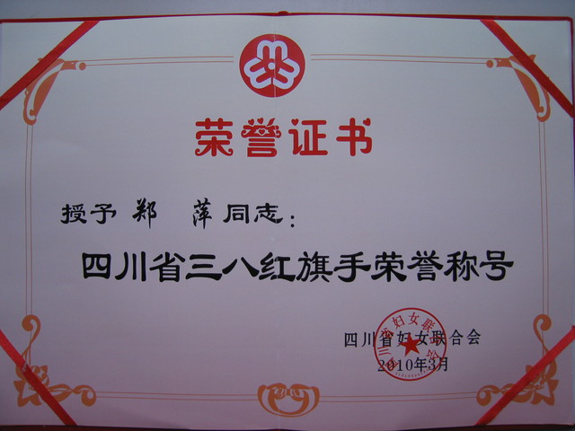 郑萍老师荣获四川省妇联颁发“四川省三八红旗手荣誉称号”