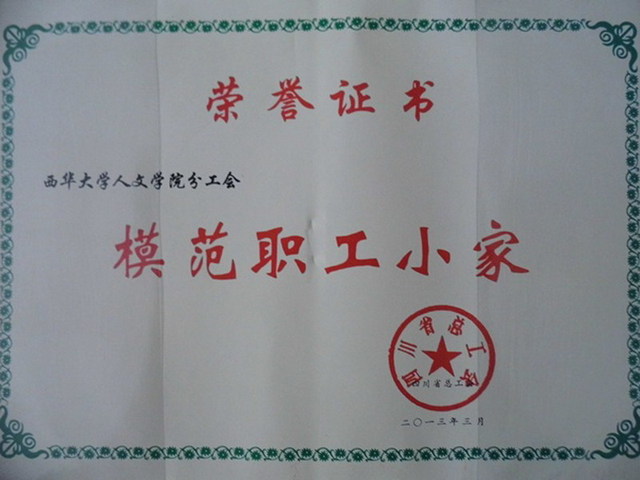 人文学院分工会获评四川省总工会“模范职工小家”称号