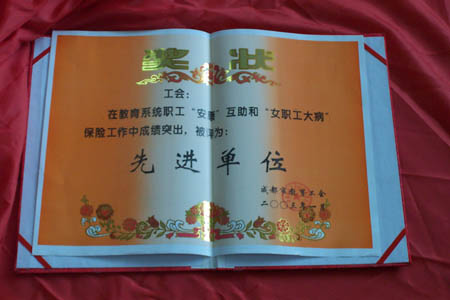 校工会被评为成都地区2002年度职工"安康"互助保险先进单位