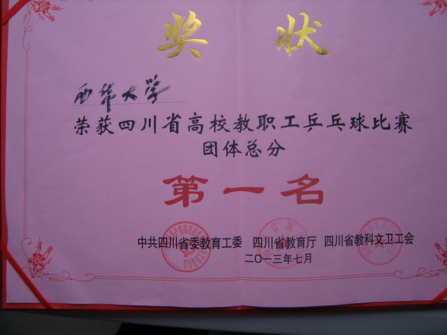 我校荣获四川省高校教职工乒乓球比赛“团体总分”第一名