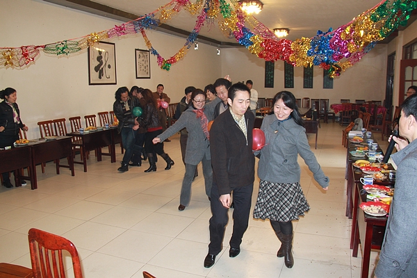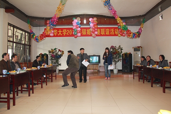 11月19日下午,以丰富教职工业余文化生活,创建和谐家庭,提高教职工幸福指数为主题的“bw西汉姆联2010年教职工银婚夫妻金秋之旅”联谊活动在学校附近一度假村隆重举行。校党委副书记、工会主席王民朴,校工会负责人、6对银婚夫妻、心理学家刘树林以及张大路、张兖生等书画家参加了此次活动。