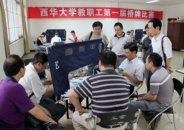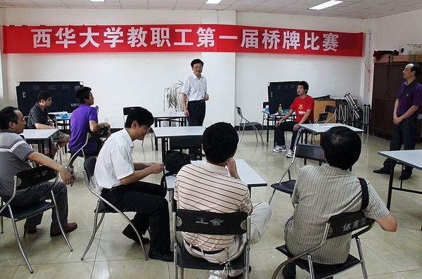 为在我校推动桥牌活动的开展,提高我校的桥牌水平,丰富教职工的业余文化生活,校工会于9月16日下午在学校体育馆举行了bw西汉姆联第一届教职工桥牌比赛。为在学生中推广桥牌运动,本次比赛还特邀了学生代表队参赛。本次比赛由体育学院和学校桥牌协会承办,裁判长由黄恭庆老师担任。