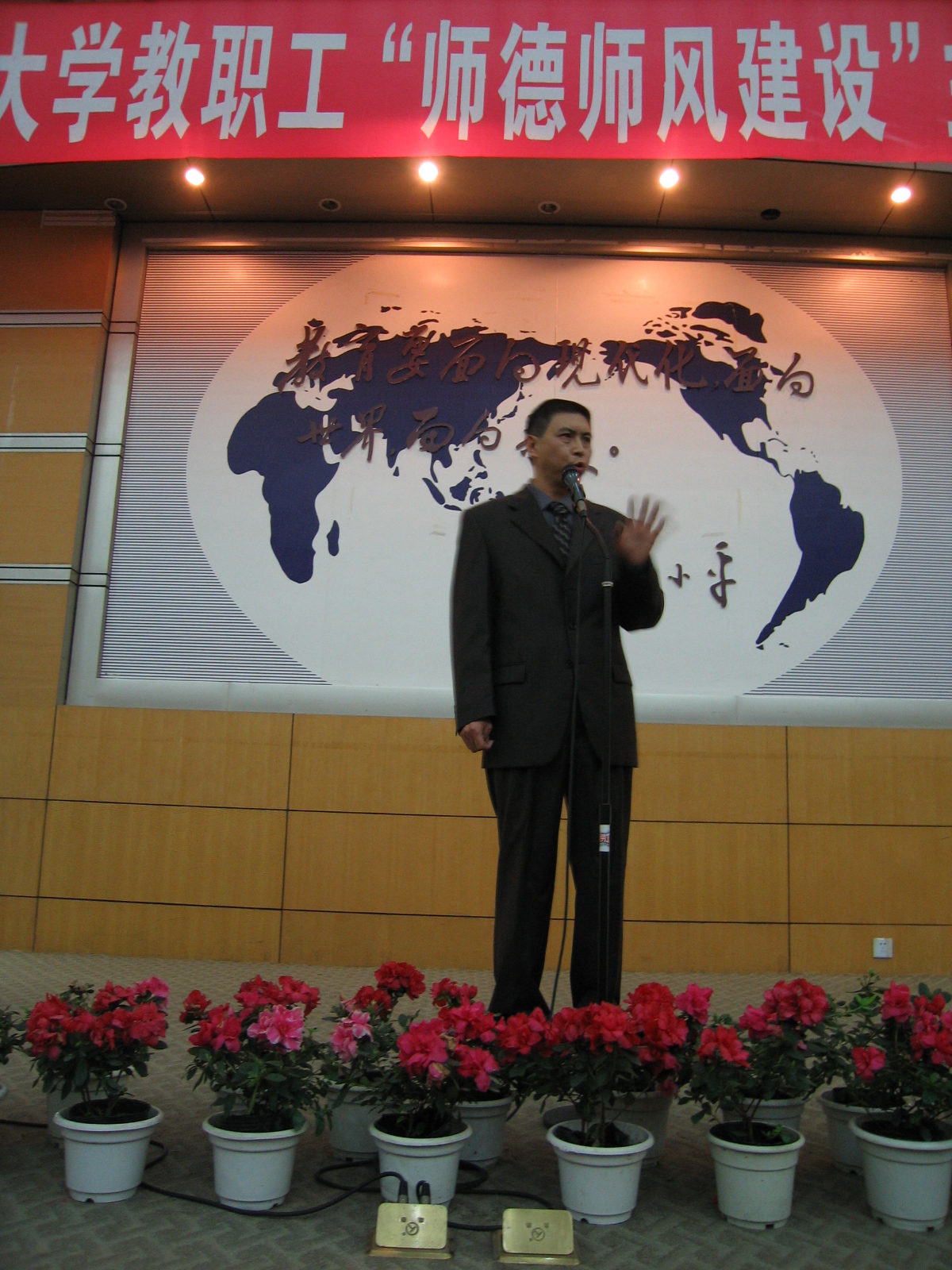 为迎接教育部对我校本科教学工作水平评估,推进我校师德师风建设,弘扬爱岗敬业、乐于奉献的精神,鼓舞广大教职工以更加饱满的工作热情和良好的师德师风投身学校的教育、教学事业,由校工会主办的师德师风建设主题演讲比赛于10月18日晚在四教报告厅隆重举行。