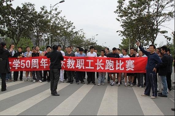4月22日下午4:00,我校校工会主办的50周年校庆教职工长跑比赛在卓越广场举行。近200名教职工参加此次比赛。