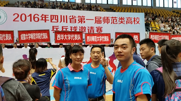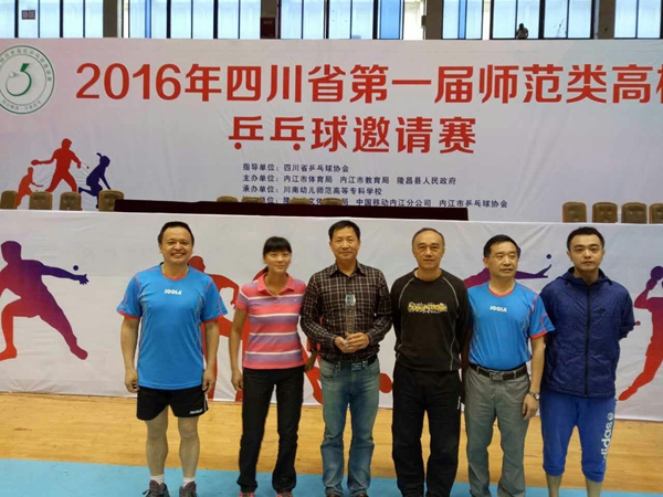 5月20日至22日四川省第一届师范类高校兵乓球邀请赛在内江市隆昌县举行,来至全省14所高校代表队参加了比赛,此次比赛云集了我省高校兵乓球精英100多人参赛。我校应邀参加了本次比赛。我校教职工代表队由机械学院秦小屿、建管学院崔宣、体育学院邹毅超和校工会李鹏组成。体育学院院长肖旭为领队,教练由奥运冠军陈龙灿担任。我校代表队参加了教职工混合团体、教职工男子单打、教职工女子单打等项目。我校运动员奋力拼搏,不畏强手,取得了优异战绩。