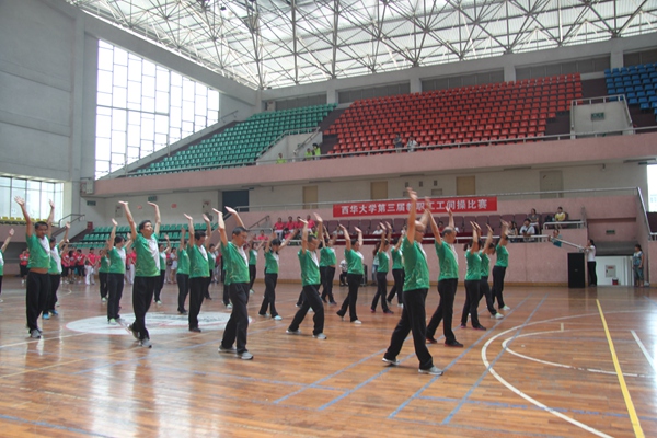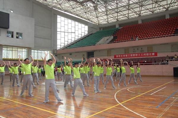 比赛在主持人介绍完评分规则后正式开始。8支代表队依次登场,将第十套大众广播体操演绎出不一样的精彩。整齐靓丽的服装、优美协调的动作、节奏明快的音乐、震耳欲聋的欢呼一同点燃了现场观众的激情。运动员踏着整齐的步伐闪亮登场,很多学院党政领导亲自参与,队员精神饱满,动作自然流畅,整齐划一,精彩的表演赢得评委和现场观众的阵阵掌声。经过激烈角逐和公平竞争,计算机学院分工会和理学院分工会获得一等奖。